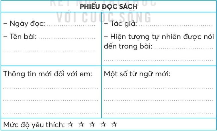 Đọc bài Mèo con và hoa nắng hoặc tìm đọc bài văn, bài thơ,… về hiện tượng tự nhiên (nắng, mưa, gió,…) và viết thông tin vào phiếu đọc sách.