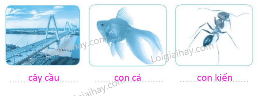 Viết tên sự vật có tiếng bắt đầu bằng c hay k dưới mỗi hình.