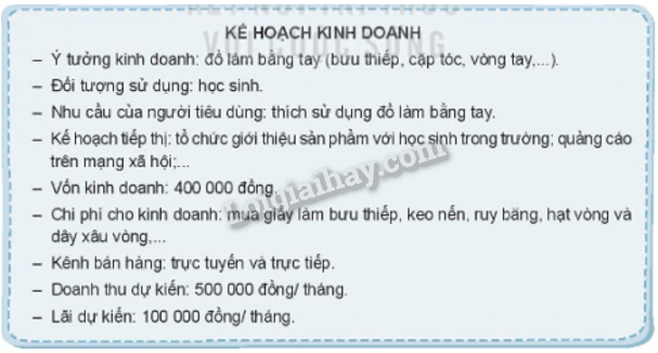 2. Từ những chia sẻ, thảo luận tự lập ra cho bản thân mình một kế hoạch kinh doanh cụ thể