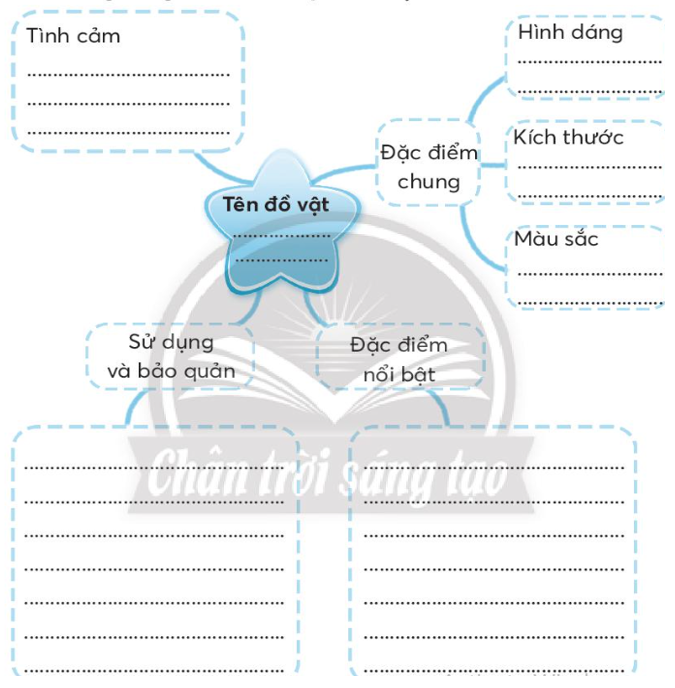 Hoàn thành sơ đồ tìm ý cho đoạn văn tả một đồ vật em thường dùng khi đi tham quan, du lịch.