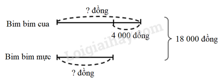 Đáp số: bim bim cua: 11 000 đồng; bim bim mực 7 000 đồng.