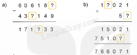 Dựa vào cách đặt tính rồi tính để tìm chữ số thích hợp cho mỗi ô trống.