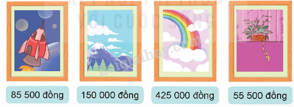 Rô-bốt đã bán bốn bức tranh với giá tiền tương ứng như hình dưới đây.