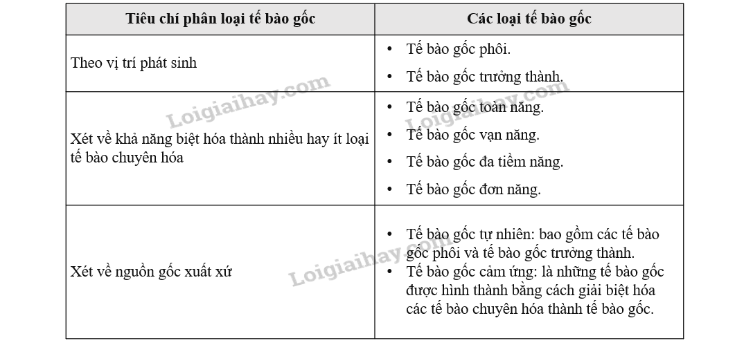 1. Thế nào là tế bào gốc? Có bao nhiêu loại tế bào gốc và chúng được phân loại theo các tiêu chí nào?