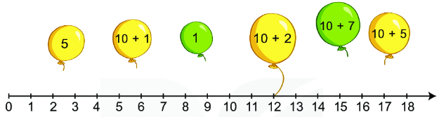 Mỗi quả bóng ứng với vạch nào trên tia số?