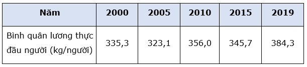 – Giai đoạn 2015 – 2019: xu hướng tăng trở lại (năm 2019, bình quân lương thực thế giới đạt 384,3 kg/người, tăng 38,6 kg/người so với năm 2015).