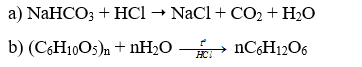 b) Ở 37 °C, tinh bột bị thuỷ phân thành glucose trong môi trường acid (HCl) có xúc tác enzyme. Viết phương trình hoá học của phản ứng xảy ra.
