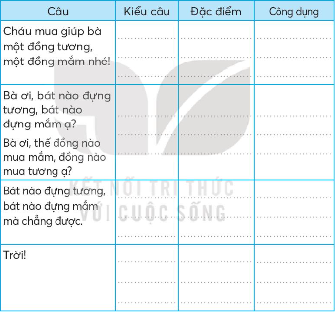 Những câu dưới đây thuộc kiểu câu gì? Hãy chỉ ra đặc điểm, công dụng của chúng.
