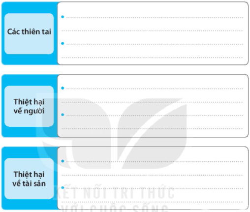 3. Viết thông tin về thiên tai em đã tìm hiểu được vào chỗ (…) trong sơ đồ dưới đây.