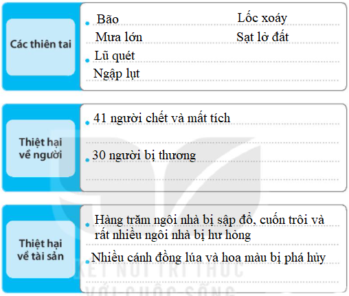 4. Đọc nội dung trang 110 SGK về thiên tai đã xảy ra ở nước ta và hoàn thành nội dung sau: