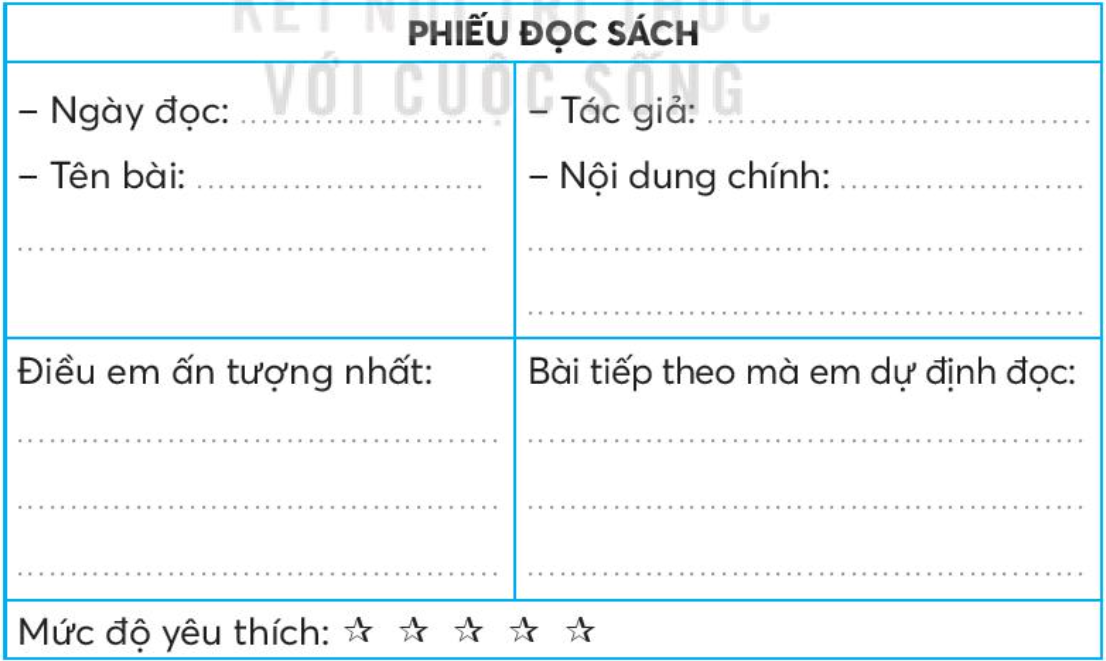 Đọc bài Ếch nhỏ và đầm lầy hoặc tìm đọc sách báo viết về hành tinh xanh của chúng ta và viết thông tin vào phiếu đọc sách.