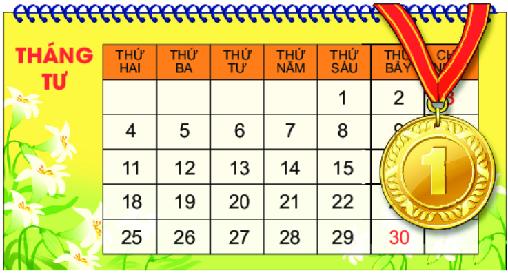 Xem tờ lịch tháng 4 dưới đây rồi trả lời câu hỏi.