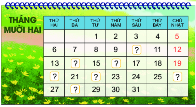 a) Nêu các ngày còn thiếu trong tờ lịch tháng 12 dưới đây.