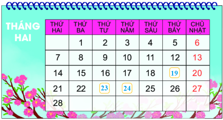 b) Xem tờ lịch bên rồi trả lời câu hỏi.