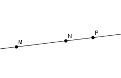 Đáp án B: Ta thấy ba điểm \(M,N,P\) thẳng hàng và điểm \(P\) không nằm giữa hai điểm \(M,N\) nên B sai.