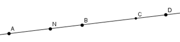 Các điểm nằm giữa \(A\) và \(D\) là \(N,B,C\)