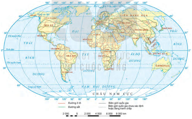 Hình 34.1. Bản đồ mạng lưới đường ô tô và đường sắt trên thế giới, năm 2019