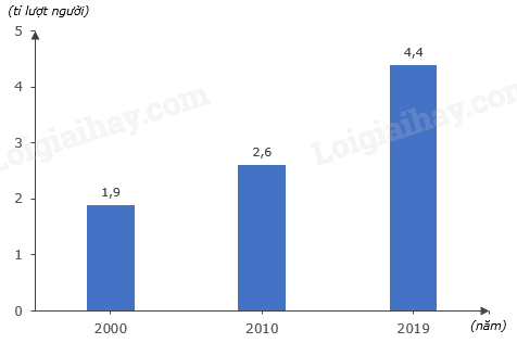 Biểu đồ số lượt hành khách vận chuyển bằng đường hàng không, giai đoạn 2000 – 2019 (tỉ lượt người)