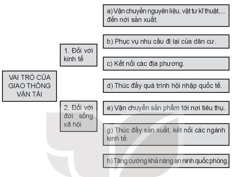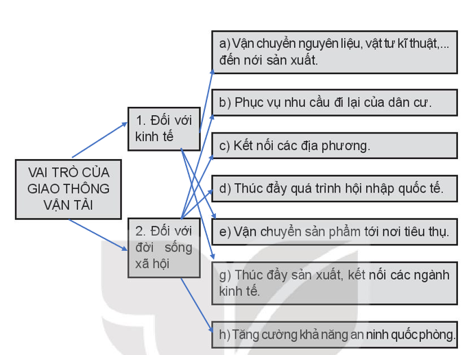 Đọc lại kiến thức về vai trò của ngành giao thông vận tải và nối mũi tên để hoàn thành sơ đồ