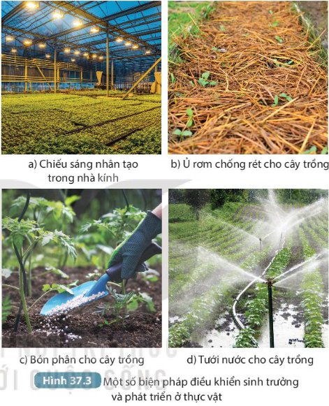 Con người đã chủ động điều khiển các yếu tố bên ngoài cho phù hợp thông qua các biện pháp như chiếu sáng nhân tạo, trồng cây trong nhà kính, bón phân, tưới nước hợp lý, thu hoạch đúng thời điểm,… để thúc đẩy sinh trưởng và phát triển, nhằm tăng năng suất cây trồng.