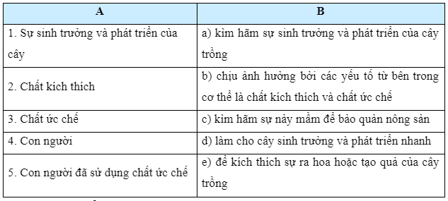 Ghép các thông tin trong cột A với cột B trong bảng sau sao cho phù hợp.