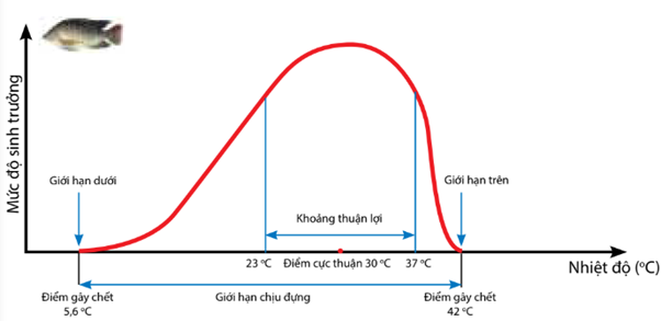 Quan sát sơ đồ giới hạn sinh thái của cá rô phi và cho biết giới hạn sinh thái nhiệt của cá rô phi là?