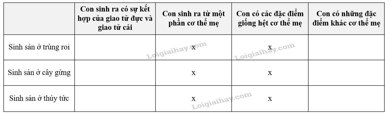 • Không có sự kết hợp của giao tử đực và giao tử cái, cơ thể con sinh ra từ một phần của cơ thể mẹ.