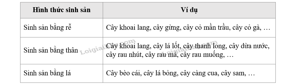 Nhớ lại các hình thức sinh sản của cây và nêu ví dụ