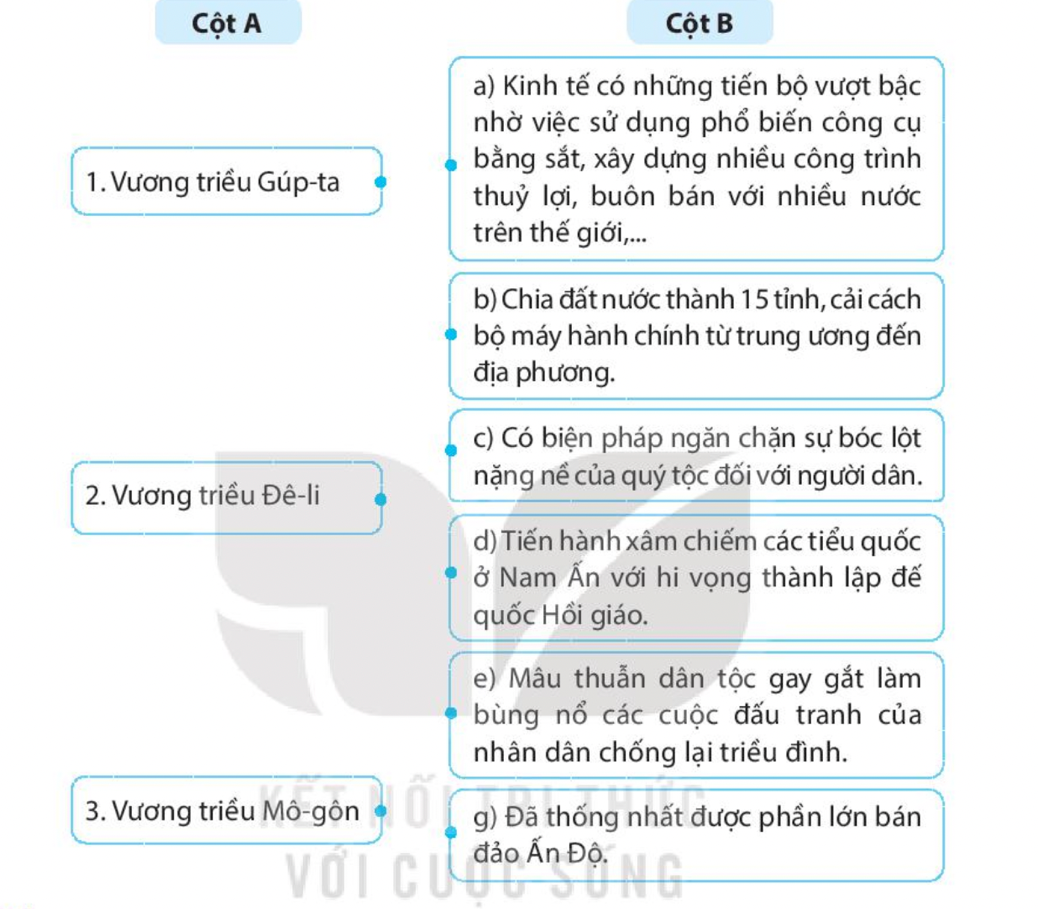 Hãy ghép nội dung ở cột A với cột B sao cho phù hợp về nội dung lịch sử.