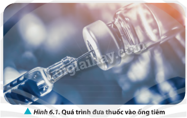 Để đưa thuốc từ lọ vào trong xilanh của ống tiêm, ban đầu nhân viên y tế đẩy pit- tông sát đầu trên của xilanh, sau đó đưa đầu kim tiêm (được gắn với ống tiêm) vào trong lọ thuốc. Khi kéo pit-tông, thuốc sẽ chảy vào trong xilanh (Hình 6.1). Quá trình lấy máu dùng trong xét nghiệm tại các cơ sở y tế cũng hoàn toàn tương tự. Ứng dụng trên dựa vào các định luật của chất khí. Vậy, đó là những định luật nào?