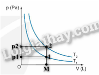 Hình trên cho thấy p1 < p2 vì quá trình chuyển từ trạng thái 1 sang trạng thái 2 là đẳng tích nên T1 < T2