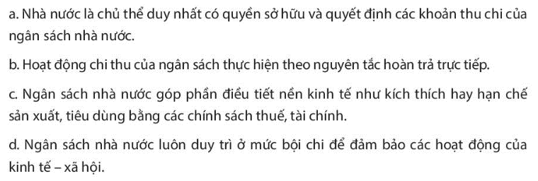 Nội dung b, d không phải đặc điểm của ngân sách nhà nước vì đây là hai trong những vai trò của ngân sách nhà nước