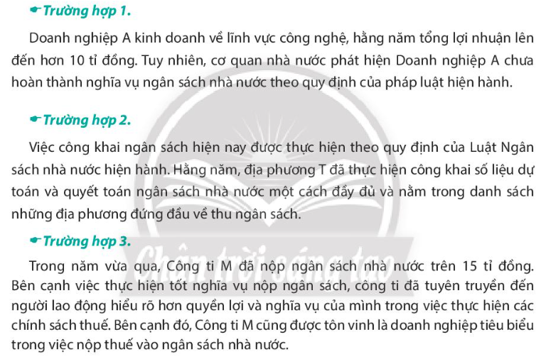 – Trao đổi ý kiến cùng bạn để xác định các hình vi thực hiện pháp luật về ngân sách trong các trường hợp.