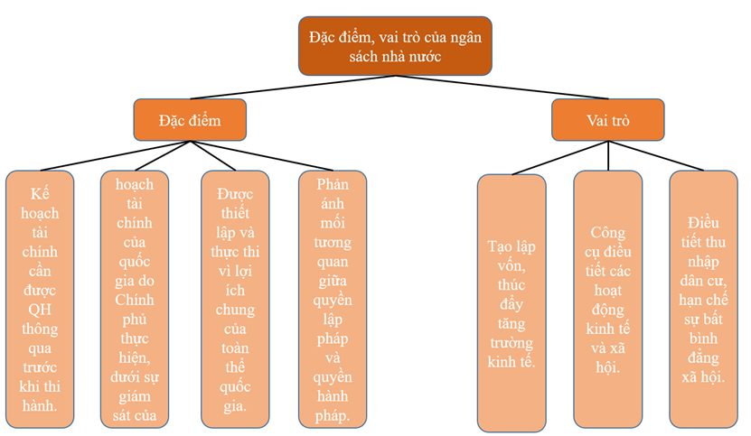 Liệt kê đặc điểm và vai trò của ngân sách nhà nước, từ đó vẽ sơ đồ tư duy theo những ý đã liệt kê.