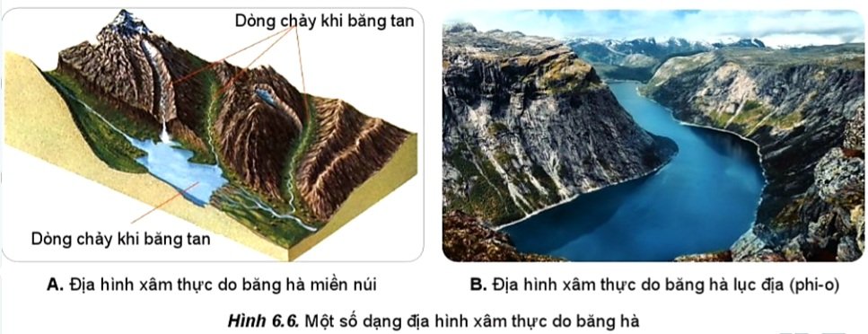 – Quá trình bóc mòn do băng hà (nạo mòn): tạo thành dạng địa hình chủ yếu là máng băng, phi-o, đá lưng cừu,…