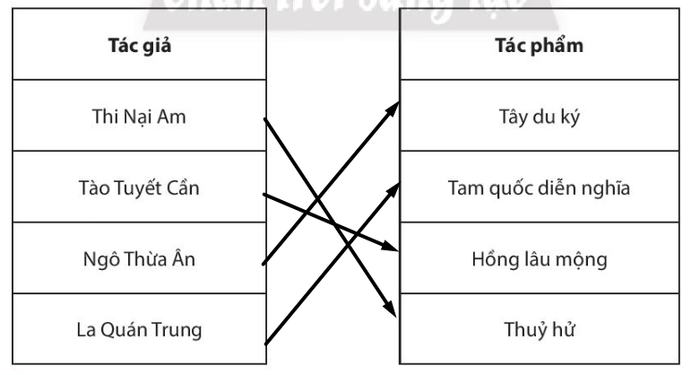 Nối các dữ liệu ở cột bên trái với dữ liệu ở cột bên phải cho phù hợp tên tác giả và tác phẩm của văn học Trung Quốc.