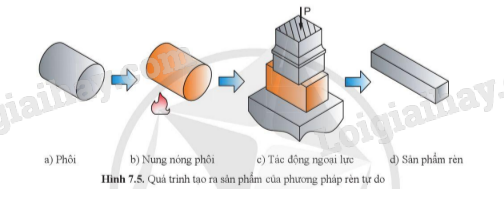Quá trình tạo ra sản phẩm của phương pháp rèn tự do: Phôi; nung nóng phôi; tác động ngoại lực.