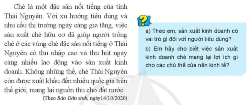 b) Việc sản xuất kinh doanh chè mang lại lợi ích cho các chủ thể của nền kinh tế là: