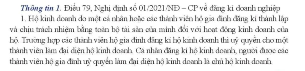 a) Em hãy căn cứ vào các thông tin để xác định chủ thể của mô hình kinh tế hộ gia đình.