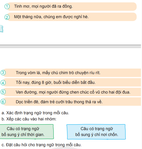 – Câu có trạng ngữ bổ sung ý chỉ thời gian: 1, 2, 4