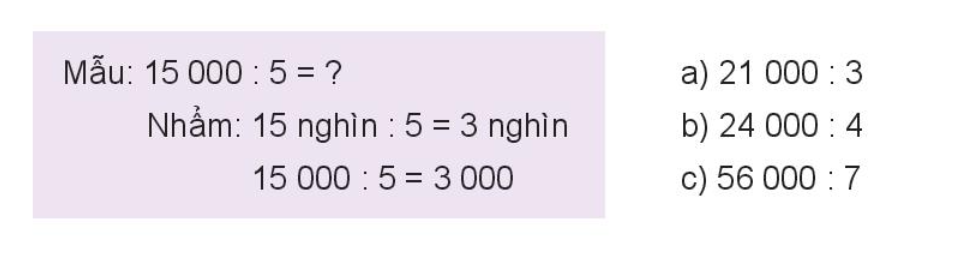 Quan sát ví dụ mẫu rồi tính nhẩm kết quả các phép chia.