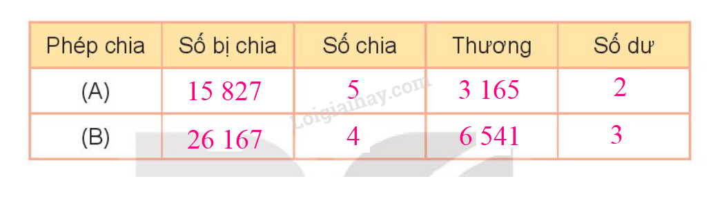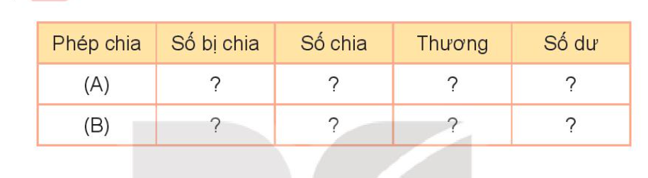 Lấy số bị chia chia cho số chia rồi điền giá trị của thương và số dư vào ô trống.