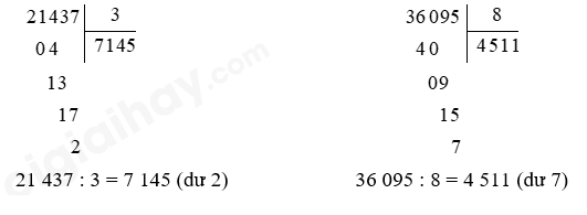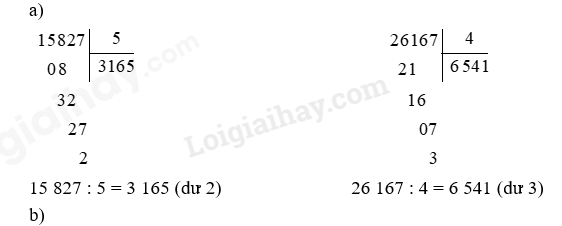 a) Thực hiện chia lần lượt từ trái sang phải.