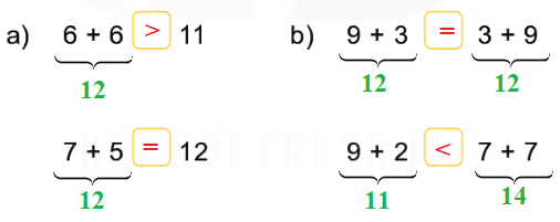 Tính nhẩm kết quả các phép tính ở hai vế rồi so sánh kết quả với nhau.