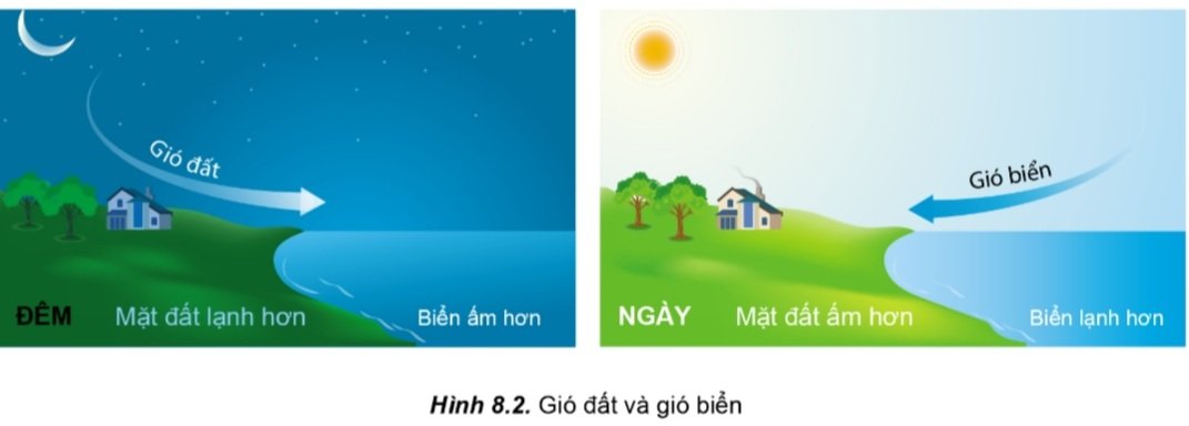 Đọc thông tin trong mục “Gió đất, gió biển” và quan sát hình 8.2.