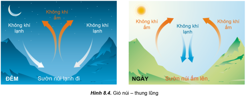 Đọc thông tin trong mục “Gió núi – thung lũng” và quan sát hình 8.4.