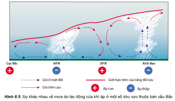 Ví dụ: Ở cực và chí tuyến đều là những nơi có áp cao nên mưa ít.