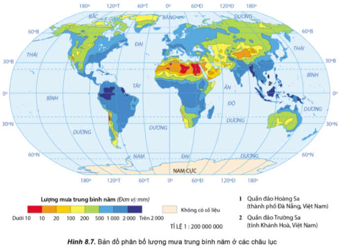 – Quan sát hình ảnh 8.7 và chú thích để trình bày sự phân bố lượng mưa.