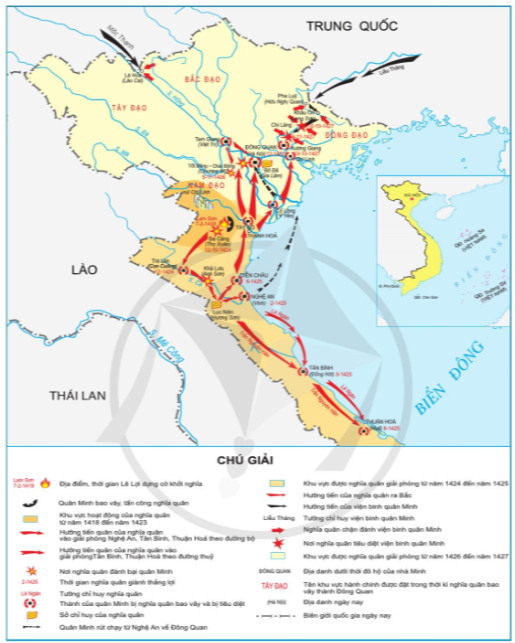 Đọc thông tin và quan sát Hình 7, trình bày diễn biến chính của cuộc khởi nghĩa Lam Sơn.