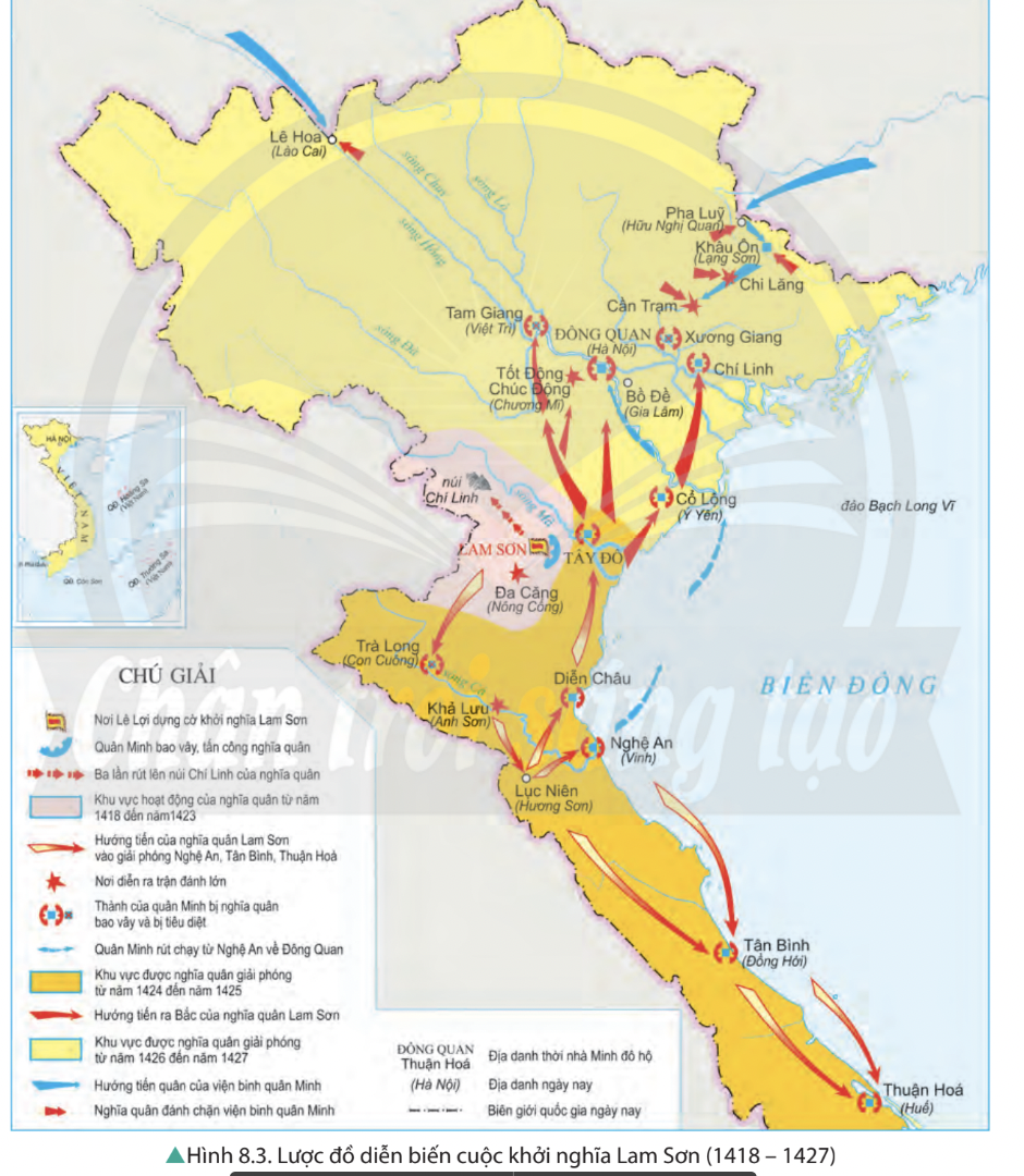 Quan sát Bảng 8.2 và Hình 8.3, nêu diễn biến chính và ý nghĩa của cuộc khởi nghĩa Lam Sơn.